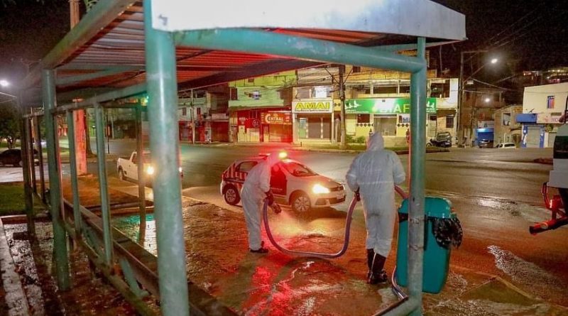 Pontos de ônibus passam por desinfecção em Simões Filho