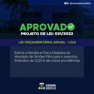 A mensagem do projeto afirma que “esta proposta de Lei Orçamentária Anual compreende todas as receitas e despesas do Orçamento Fiscal, da Seguridade Social e Investimento dos Poderes do Município, incluindo seus fundos, órgãos e entidades instituídas e mantidas pelo poder público, e tem como objetivo maior melhorar a qualidade de vida da população de Simões Filho, através dos serviços prestados por esta Prefeitura”.