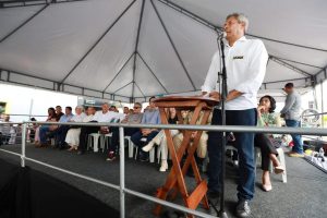 Na ocasião, a comitiva do governo estadual ainda visitou as obras de modernização e ampliação do Colégio Estadual Lauro Farani, que contam com R$ 7,7 milhões em investimentos. A unidade, que passa a ocupar o espaço onde antes funcionava o Colégio Municipal Nívea Santos Costa e terá capacidade para acolher até 2.000 alunos após a reforma, recebe intervenções para a implantação de 10 novas salas de aula, restaurante estudantil, teatro e campo de futebol society com pista de atletismo.