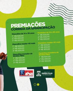 A Prefeitura de Simões Filho, através da Secretaria de Esporte, Lazer e Juventude (Sejuv), realiza no dia 5.11 (domingo), a Corrida da Emancipação e as inscrições já estão abertas. A iniciativa faz parte das atividades em alusão ao Aniversário da Cidade, 62 anos de Emancipação Política, e conta com o apoio da Federação Baiana de Atletismo (FBA).