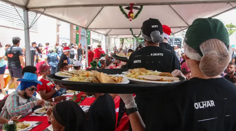 Centenas de moradores de rua tiveram neste sábado (23) um almoço diferente na capital paulista. Diversas entidades se juntaram para oferecer uma ceia de Natal para pessoas em situação vulnerável da região da Mooca, na zona leste de São Paulo. Uma mesa com cerca de 250 lugares ofereceu lombo, arroz com legumes, purê de batata e farofa, acompanhados de suco de uva. Como sobremesa, panetone e bolo de chocolate.