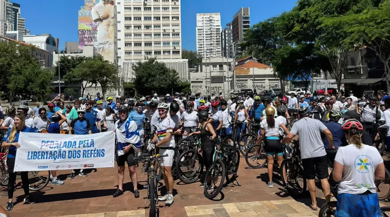 Mais de 200 ciclistas se reuniram em São Paulo neste domingo (14), às 9h30, para marcar o 100º dia desde os ataques do Hamas a Israel em 7 de outubro. A concentração aconteceu no Parque do Povo, com os participantes usando camiseta branca ou azul e fitas amarelas amarradas nas bicicletas para reivindicar o retorno das 128 pessoas que continuam sequestradas pelo grupo terrorista. Entre elas está o brasileiro Michel Nisenbaum, de 59 anos. Ele foi sequestrado no dia 7 de outubro, em Sderot, no Sul de Israel, quando saiu para buscar uma neta. Pouco tempo depois, Michel já estava sob o poder de sequestradores e, desde então, não há notícias sobre seu estado de saúde.