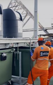 Entenda: Quando o resíduo é descartado, vai direto para uma estrutura subterrânea e fica armazenado no local até o momento da coleta, com o levantamento da estrutura através de um sistema de pressão. Somente os trabalhadores responsáveis pela coleta terão acesso a esta estrutura subterrânea.