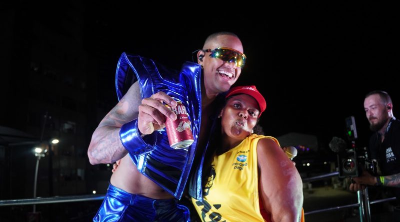 A ambulante Tailane Figueiredo ficou muito emocionada com a homenagem do Gigante. “Galera, quero pedir uma salva de palmas pra ela e pra todos os ambulantes e catadores, é essa galera do corre que faz a festa acontecer, que garante a sua cerveja gelada e a reciclagem das latinhas. É por isso que a Ambev tem várias iniciativas pra apoiar essa galera. Eu vendia frango na praia, pai, se na minha época tivesse um apoio desses, o GG aqui tinha estourando muito antes. Então curtam muito o carnaval, que quanto mais vocês
