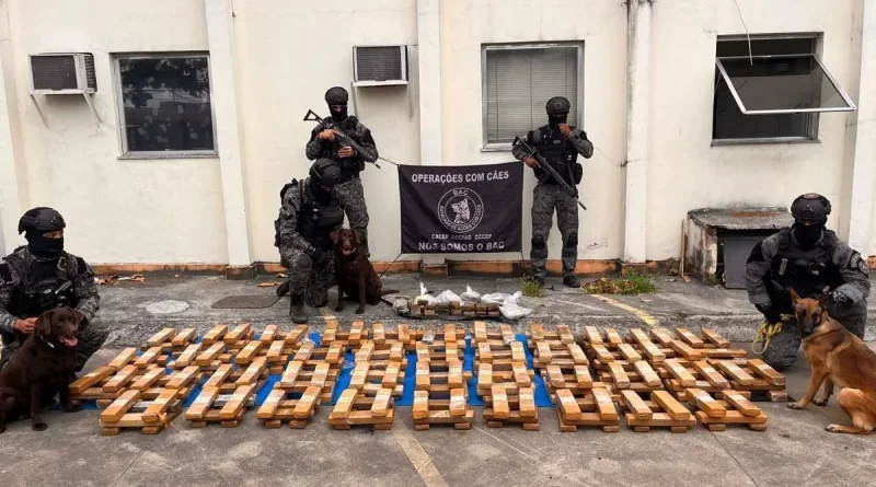 Policiais militares do Batalhão de Ações com Cães (BAC), com auxílio de três cadelas, apreenderam uma tonelada de maconha em uma escola da rede municipal de ensino na comunidade da Nova Holanda, no Complexo da Maré, zona norte do Rio de Janeiro.