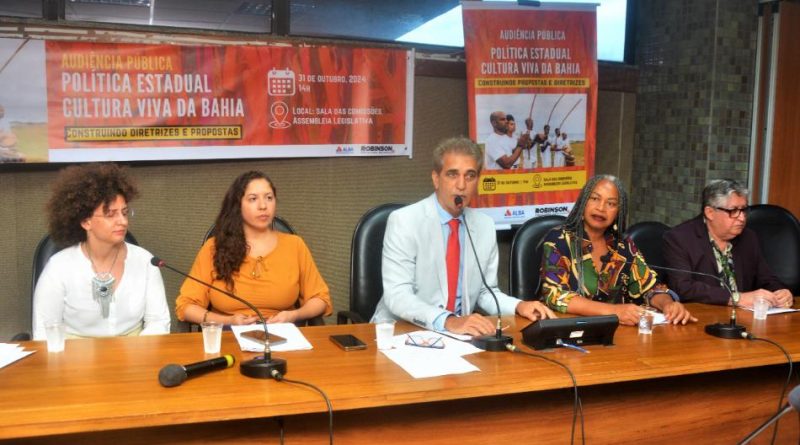 A Comissão de Constituição e Justiça da Assembleia Legislativa promoveu, na tarde desta quinta-feira (31), nas salas Luís Cabral e Herculano Menezes, a audiência pública intitulada “Construindo Propostas e Diretrizes da Política Estadual de Cultura Viva”, uma proposição do deputado Robinson Almeida (PT). O presidente da CCJ explicou que a reunião tinha o objetivo de debater o Projeto de Lei 25.545/2024, que institui a Política Estadual de Cultura Viva da Bahia, “um momento importante para que entidades civis, fazedores de cultura, artistas e representantes do governo possam dar sugestões, emitir suas opiniões e melhorar o PL que tramita na Casa do Povo”.