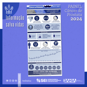 Outras informações podem ser conferidas no Painel do Câncer de Próstata, disponível no site da SEI (www.sei.ba.gov.br), na aba Saúde. Acesse aqui: https://sei.ba.gov.br/images/publicacoes/infograficos/cancer_de_prostata_bahia_2024.pdf
