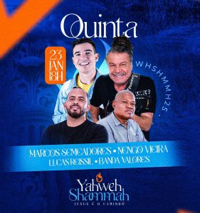 Nesta quinta noite, grandes nomes sobem ao palco para emocionar e inspirar o público: Marcos Semeadores, Nengo Vieira, Lucas Reissil e Banda Valores. As apresentações prometem trazer mensagens de esperança, amor e renovação espiritual, além de envolver a plateia com canções que exaltam os valores cristãos.