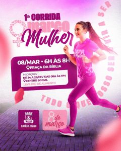 A Prefeitura de Simões Filho, por meio da Secretaria de Políticas Públicas para Mulheres (SPM) e de Desenvolvimento Social e Cidadania (Sedesc), abre inscrições para a Iª Corrida Março Mulher, evento que integra as atividades do mês da mulher e celebra o Dia Internacional da Mulher, em 8 de março.