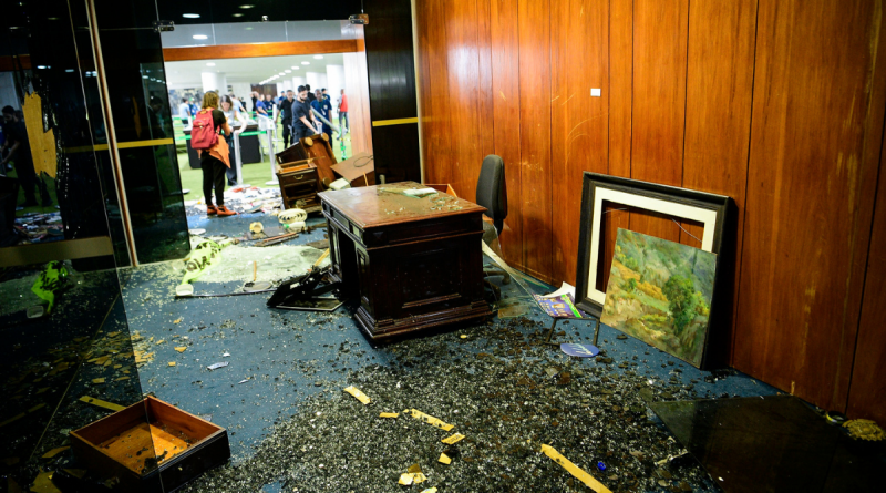 Criminosos promoveram atos de vandalismo que destruíram mobiliário, obras de arte e objetos históricos, além de gabinetes, vidraças, equipamentos eletrônicos e outros bens que encontraram pelo caminho.