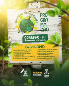 A programação da Semana do Meio Ambiente inclui uma série de atividades educativas que serão realizadas durante todo o mês nas escolas municipais e espaços públicos, envolvendo alunos, profissionais da educação e a comunidade em geral. Entre as ações previstas estão palestras, oficinas, plantio de mudas e mutirões de limpeza, todas voltadas para estimular práticas sustentáveis e o cuidado com o meio ambiente.