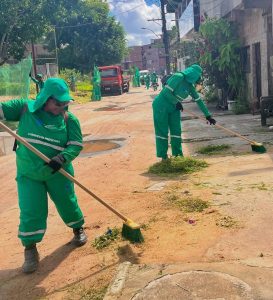 Os mutirões de limpeza seguem em calendário semanal, contemplando bairros, avenidas e áreas de maior acúmulo de resíduos.