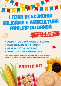 Com o objetivo de valorizar a produção local, fortalecer a economia comunitária e promover a cultura popular, a cidade de Simões Filho realiza, entre os dias 13 a 15 de junho, a 1ª Feira Solidária e de Agricultura Familiar do Quilombo Dandá. A iniciativa é realizada pelo Quilombo Dandá, tem início às 7h e promete reunir sabores, saberes e tradições em um espaço de fortalecimento social e econômico.
