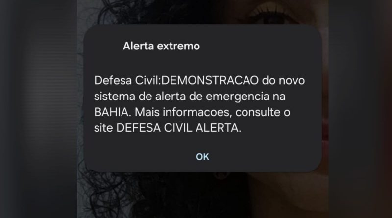 A mensagem que apareceu na tela dos celulares durante o teste foi: “ALERTA EXTREMO – Defesa Civil: ALERTA DE DEMONSTRAÇÃO do novo sistema de alerta de emergência no estado. Para mais informações, consulte o site do Defesa Civil Alerta.”