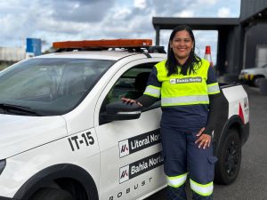 Tiele Medrado, colaboradora da Monte Rodovias e primeira operadora viária da Bahia. Imagem: Divulgação.