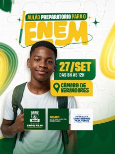 Com o objetivo de apoiar os estudantes que irão participar do Exame Nacional do Ensino Médio (ENEM) 2025, a Prefeitura de Simões Filho promove, neste sábado (27), Aulão Preparatório, em parceria com o Projeto Universidade para Todos (UPT) e a Câmara de Vereadores.